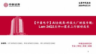 [电子]2024-08-03-中泰证券-【中泰电子】AI全视角-科技大厂财报专题:Lam 24Q2点评—需求上行驱动成长-12页(银创产业通www.chanyetong.net)