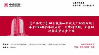 [电子]2024-08-04-中泰证券-【中泰电子】AI全视角—科技大厂财报专题:苹果FY24Q3季报点评:业绩超预期,全套AI功能有望逐步上线-23页(银创产业通www.chanyetong.net)(银创产业通www.chanyetong.net)