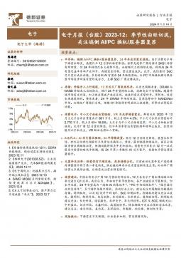 [电子]2024-01-15-德邦证券-电子月报(台股)2023-12:季节性由旺切淡,关注端侧AI-PC换机-服务器复苏-20页(银创产业通www.chanyetong.net)(银创产业通www.chanyetong.net)