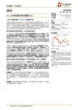 [智能硬件]2022-11-21-天风证券-通信行业点评:VR:元宇宙虚拟世界的重要入口-5页(银创产业通www.chanyetong.net)(银创产业通www.chanyetong.net)