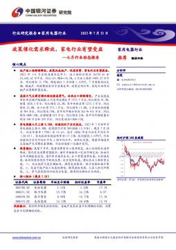 [家电家居]2023-08-01-中国银河-家用电器行业七月行业动态报告:政策催化需求释放,家电行业有望受益-16页(银创产业通www.chanyetong.net)(银创产业通www.chanyetong.net)