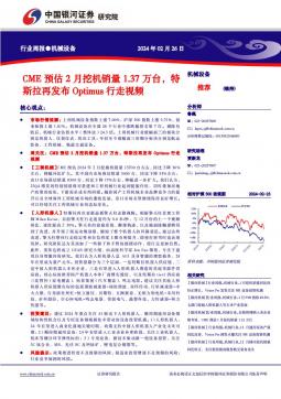 [通用设备]2024-02-27-中国银河-机械设备行业周报:CME预估2月挖机销量1.37万台,特斯拉再发布Optimus行走视频-20页(银创产业通www.chanyetong.net)(银创产业通www.chanyetong.net)