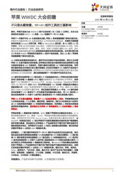 [消费电子]2023-06-05-天风证券-手机行业苹果WWDC大会前瞻:不只是头戴装置,XR+AI+创作工具的三重影响-2页(银创产业通www.chanyetong.net)(银创产业通www.chanyetong.net)