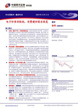 [消费电子]2022-12-12-中国银河-建材行业行业周报:电子纱库存较低,消费建材需求恢复-14页(银创产业通www.chanyetong.net)(银创产业通www.chanyetong.net)