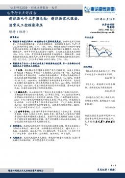 [消费电子]2022-11-30-东吴证券国际经纪-电子行业点评报告:新能源电子三季报总结:新能源需求旺盛,消费及工控短期承压-5页(银创产业通www.chanyetong.net)(银创产业通www.chanyetong.net)