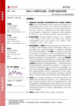 [电子]2023-11-07-东莞证券-电子行业2023年三季报业绩综述:板块Q3业绩环比改善,行业景气度逐步回暖-19页(银创产业通www.chanyetong.net)(银创产业通www.chanyetong.net)