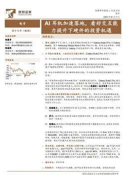 [消费电子]2024-07-12-德邦证券-电子:AI耳机加速落地,看好交互能力提升下硬件的投资机遇-2页(银创产业通www.chanyetong.net)(银创产业通www.chanyetong.net)