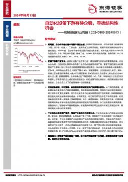 [通用设备]2024-09-15-东海证券-机械设备行业周报:自动化设备下游有待企稳,寻找结构性机会-9页(银创产业通www.chanyetong.net)(银创产业通www.chanyetong.net)