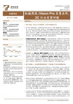 [消费电子]2023-12-25-德邦证券-机械周报:Vision Pro发售在即,3C行业有望回暖-5页(银创产业通www.chanyetong.net)