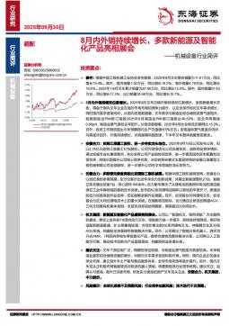 [通用设备]2025-09-30-东海证券-机械设备行业简评:8月内外销持续增长,多款新能源及智能化产品亮相展会-2页(银创产业通www.chanyetong.net)