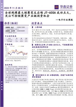 [电子]2023-11-05-华鑫证券-电子行业周报:全球规模最大核聚变反应堆JT-60SA成功点火,关注可控核聚变产业链投资机会-40页(银创产业通www.chanyetong.net)(银创产业通www.chanyetong.net)
