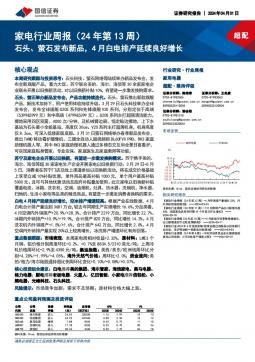 [家电家居]2024-04-01-国信证券-家电行业周报(24年第13周):石头、萤石发布新品,4月白电排产延续良好增长-14页(银创产业通www.chanyetong.net)(银创产业通www.chanyetong.net)