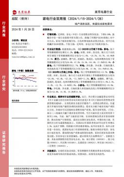 [家电家居]2024-01-29-东莞证券-家电行业双周报:地产消息活跃,有望拉动家电需求-15页(银创产业通www.chanyetong.net)(银创产业通www.chanyetong.net)