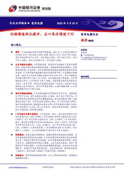 [家电家居]2022-06-24-中国银河-家用电器行业点评报告:内销增速环比提升,出口承压增速下行-6页(银创产业通www.chanyetong.net)(银创产业通www.chanyetong.net)