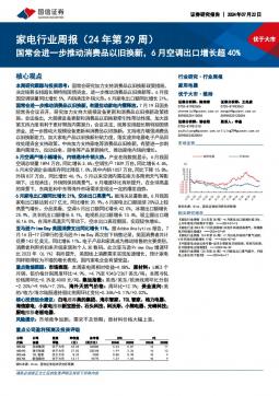 [家电家居]2024-07-22-国信证券-家电行业周报(24年第29周):国常会进一步推动消费品以旧换新,6月空调出口增长超40%-14页(银创产业通www.chanyetong.net)