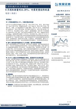 [工程机械]2023-09-10-东吴证券-工程机械行业点评报告:8月挖机销量同比-28%,内需有望边际改善-4页(银创产业通www.chanyetong.net)(银创产业通www.chanyetong.net)