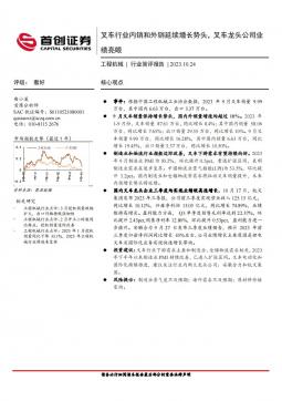 [工程机械]2023-10-25-首创证券-工程机械行业简评报告:叉车行业内销和外销延续增长势头,叉车龙头公司业绩亮眼-3页(银创产业通www.chanyetong.net)(银创产业通www.chanyetong.net)