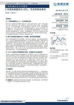 [工程机械]2023-10-17-东吴证券-工程机械行业点评报告:9月挖机销量同比-33%,行业阶段性承压-4页(银创产业通www.chanyetong.net)(银创产业通www.chanyetong.net)