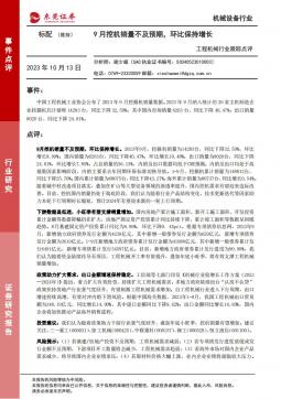 [工程机械]2023-10-13-东莞证券-工程机械行业跟踪点评:9月挖机销量不及预期,环比保持增长-3页(银创产业通www.chanyetong.net)(银创产业通www.chanyetong.net)