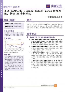 [消费电子]2024-11-20-华鑫证券-计算机行业点评:苹果:Apple Intelligence持续推进,推动AI手机升级-5页(银创产业通www.chanyetong.net)(银创产业通www.chanyetong.net)