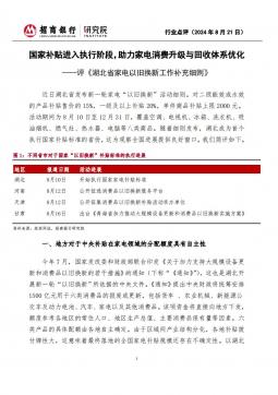 [家电家居]2024-08-30-招商银行-评《湖北省家电以旧换新工作补充细则》:国家补贴进入执行阶段,助力家电消费升级与回收体系优化-3页(银创产业通www.chanyetong.net)(银创产业通www.chanyetong.net)