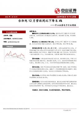 [电子]2024-01-26-中山证券-电子行业周报:台积电12月营收同比下降8.4%-11页(银创产业通www.chanyetong.net)