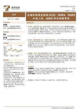 [电子]2024-01-23-德邦证券-电子:存储价格周度跟踪-0122:DDR4、DDR5加速上涨,eSSD供给持续紧张-3页(银创产业通www.chanyetong.net)(银创产业通www.chanyetong.net)