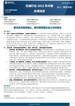 [通用设备]2023-09-04-国金证券-机械行业2022年中报业绩综述:需求复苏趋势确立,看好顺周期及自主可控板块-16页(银创产业通www.chanyetong.net)(银创产业通www.chanyetong.net)