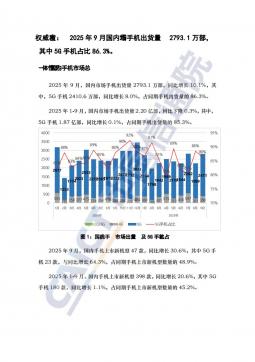 [电子]2025-11-23-中国信通院-权威发布:2025年9月国内市场手机出货量2793.1万部,其中5G手机占比86.3%。-3页(银创产业通www.chanyetong.net)