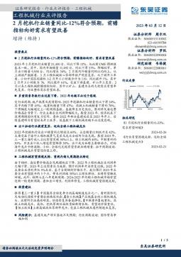 [工程机械]2023-03-12-东吴证券-工程机械行业点评报告:2月挖机行业销量同比-12%符合预期,前瞻指标向好需求有望改善-5页(银创产业通www.chanyetong.net)(银创产业通www.chanyetong.net)