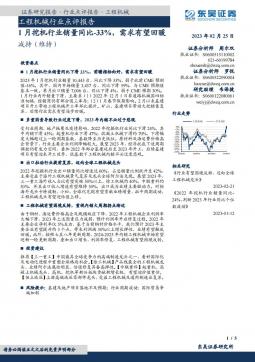 [工程机械]2023-02-26-东吴证券-工程机械行业点评报告:1月挖机行业销量同比-33%,需求有望回暖-5页(银创产业通www.chanyetong.net)(银创产业通www.chanyetong.net)