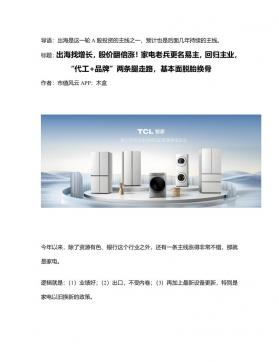 [家电家居]2024-06-12-北京韬联科技-出海找增长,股价翻倍涨!家电老兵更名易主,回归主业,“代工+品牌”两条腿走路,基本面脱胎换骨-16页(银创产业通www.chanyetong.net)(银创产业通www.chanyetong.net)