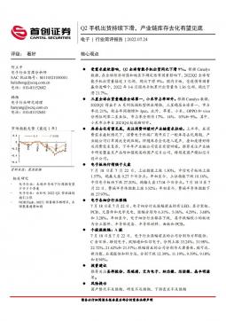 [消费电子]2022-07-25-首创证券-电子行业简评报告:Q2手机出货持续下滑,产业链库存去化有望见底-10页(银创产业通www.chanyetong.net)(银创产业通www.chanyetong.net)
