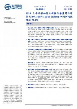 [通用设备]2024-08-26-海通国际-机械工业行业跟踪报告:2024上半年船舶行业新接订单量同比增长43.9%;扬子江船业2024H1净利润同比增加77.2%-9页(银创产业通www.chanyetong.net)