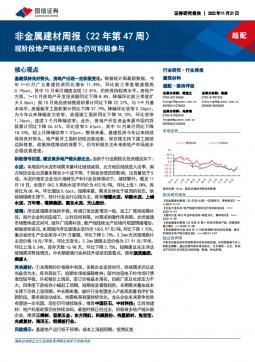 [房地产]2022-11-22-国信证券-非金属建材周报(22年第47周):现阶段地产链投资机会仍可积极参与-20页(银创产业通www.chanyetong.net)(银创产业通www.chanyetong.net)